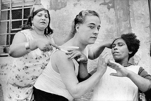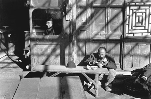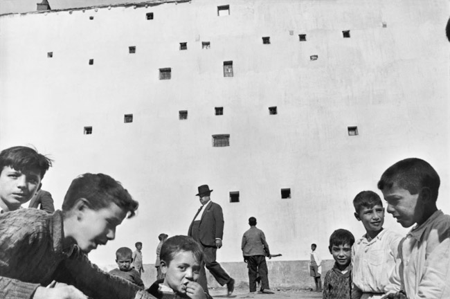 If they were less they would be, to Cartier-Bresson, solutions without problems. The photograph opposite concerns gesture, line, shape, scale, the flatness of the picture plane, and the difference between art and life.