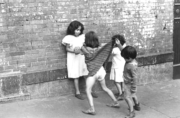 During the early 1940's Helen Levitt made many photographs on the streets of New York. Her photographs were not intended to tell a story or document a social thesis; she worked in poor neighborhoods because there were people there, and a street life that was richly sociable and visually interesting.