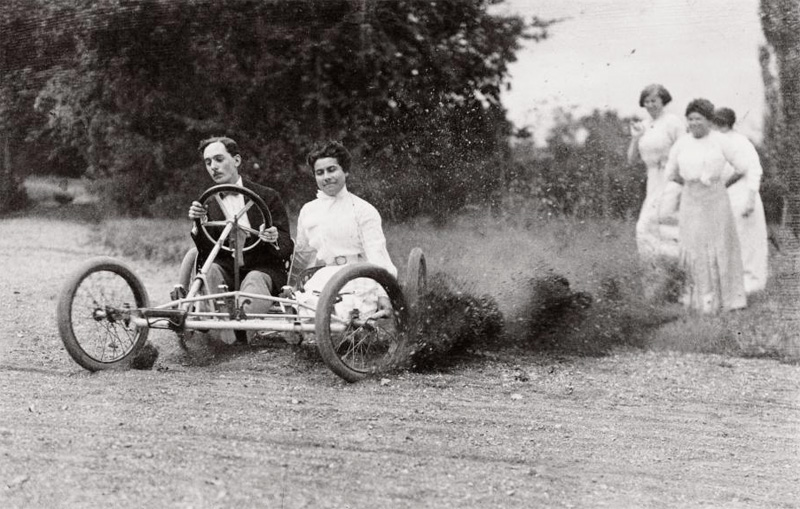 Lartigue was a privileged child, and he made the best of it. From the subjects of his pictures one would assume that the life of his family was dedicated wholly to the pursuit of amusement: the beach, the racetrack, beautiful woman in elegant costumes, heroic motor cars and daredevil drivers, flying machines, and all manner of splendid --- including photography itself. Even if Lartigue had been an ordinary photographer, his document of these things would be precious, but he was in fact a photographer of marvelous talent. He caught memorable images out of the flux of life with the skill and style of a great natural athlete --- a visual athlete to whom the best game of all was that of seeing clearly.