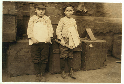 Lewis Hine traveled the United States from 1908 to 1918, photographing some of the millions of underprivileged children who labored as a regular part of the work force.